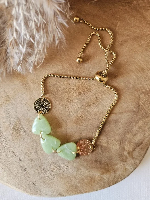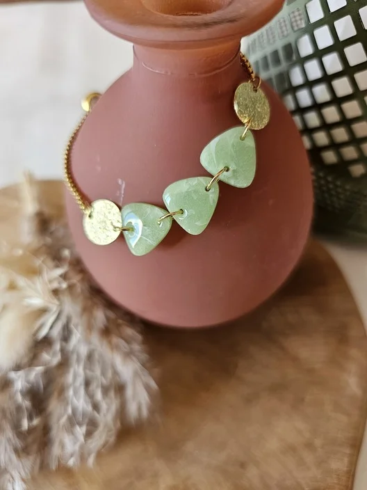 Ce bracelet, avec ses pierres vertes et ses disques dorés, capture l’essence de cette floraison, ajoutant une touche de sophistication naturelle à votre poignet. En portant le bracelet Dahlia, vous incarnez la grâce et l’élégance de la nature, rappelant à tous la beauté intemporelle des jardins en pleine floraison.