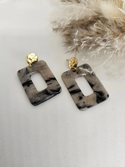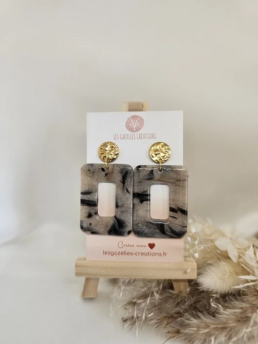 Inspirées par ces symboles de durabilité et de puissance, les boucles Titan sont conçues en argile polymère marbrée noire et blanche.